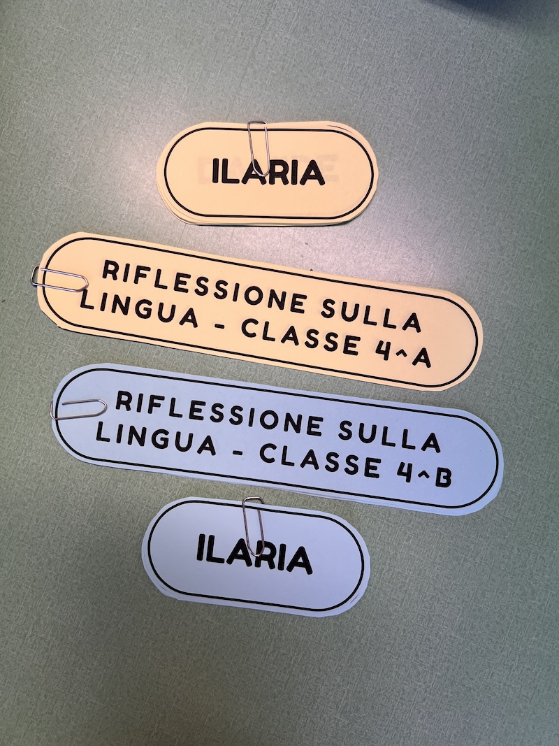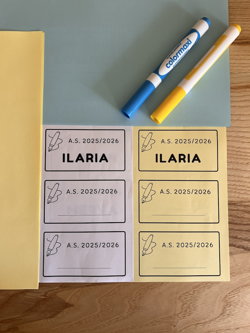 Per completare la copertina abbiamo aggiunto delle etichette: il titolo del quaderno e lo spazio per il nome.
