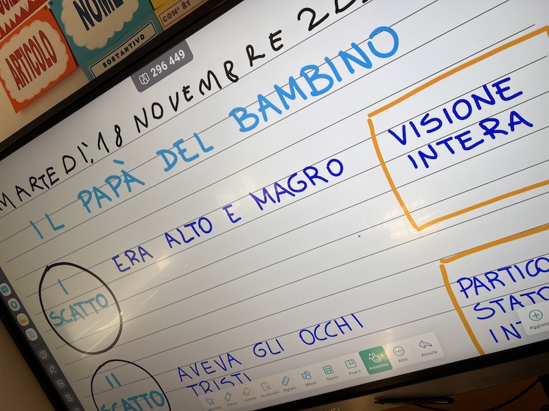 Il libro non presenta titoli per i singoli capitoli, e questo si è rivelato un pretesto perfetto per esercitare creatività e comprensione profonda del testo. Dopo la lettura ad alta voce, ci siamo fermati a riflettere: “Quale titolo potremmo dare noi a questo capitolo?”